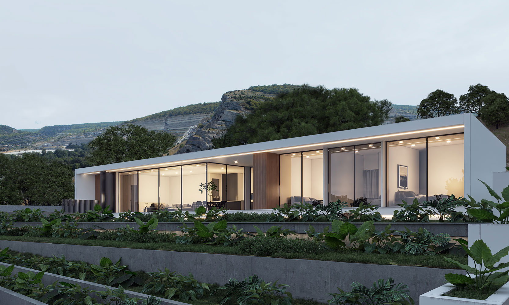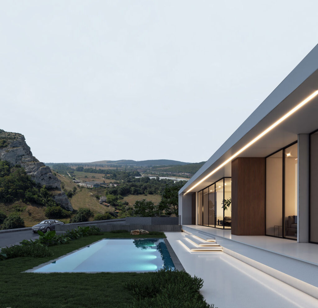 Simplicity is the word that can describe the house in Agrokipia. The architectural project through a linear floor plan is an example of a small-scale house which fully serves the functionality and aesthetics. This is achieved through its integration into the landscape, the correct orientation, the correct location of the house on the plot, as well as the correct arrangement of the interiors. When the architecture embraces the landscape and respects the needs of the user then life in the home is not a routine, but an experience.