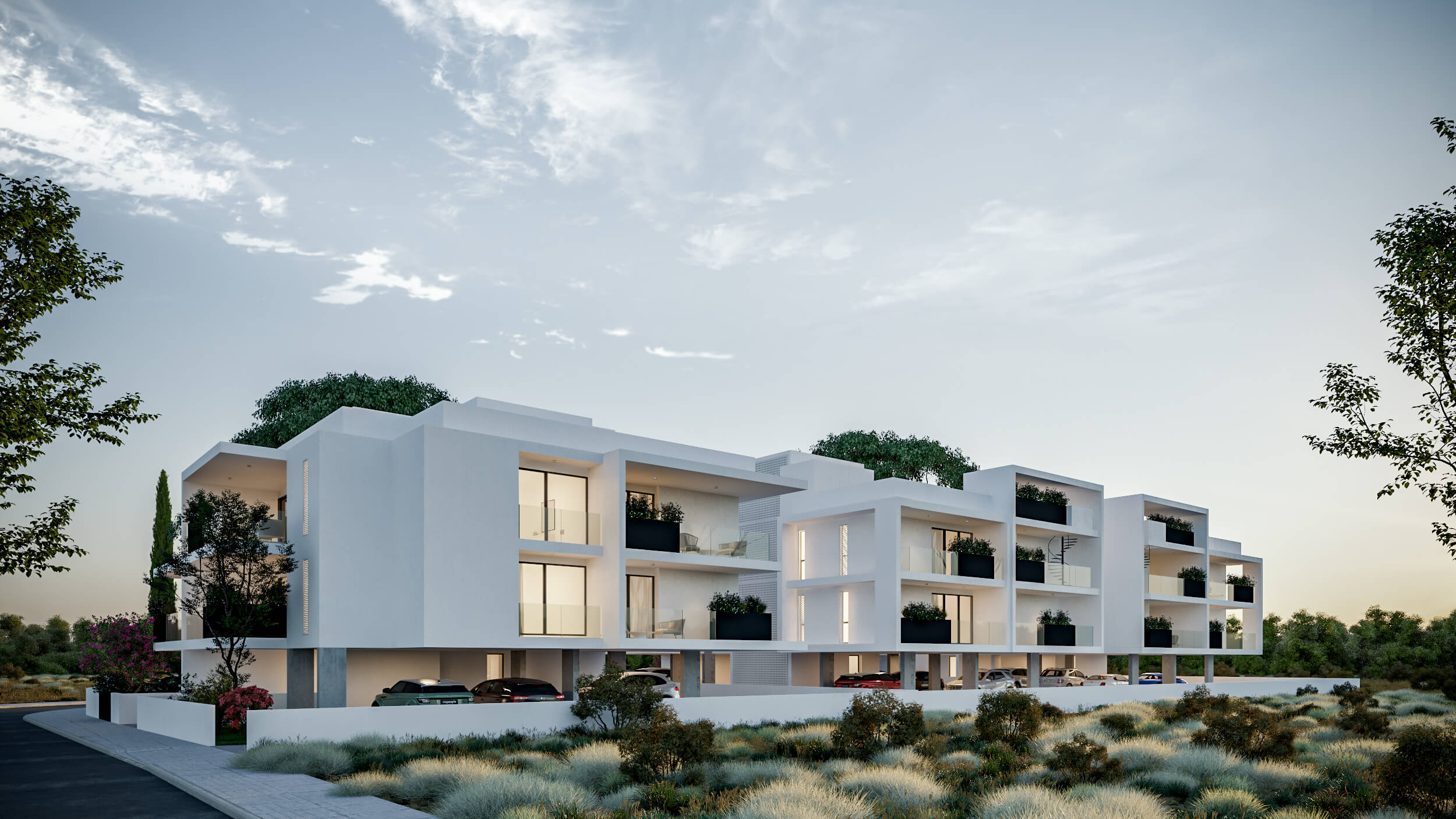 The project consists of 3 different buildings and a total of 22 apartments of different types. Each building, while different from the others, creates a single visual development in a way that each one creates common spaces with each other, assisting the functionality of the apartments. Most of the apartments are designed in such a way that they take advantage of large areas, whether they are a courtyard on the ground floor or the roofs of the apartments. A key feature in the design is the integration of planting on all levels of all three buildings in a way that creates a green composition on the facades of the buildings.