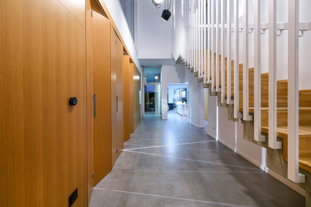 The house in Dhali is surrounded on three sides by a public road. The protection of the privacy of the owners and the exploitation of the shape of the plot for the development of the house was the inspiration for the design. The avoidance of fencing in the area of the entrances to the house and the connection with the level of the sidewalk works positively in terms of highlighting the volume of the house and extending the separation of uses internally. Careful planting with proper lighting coexists harmoniously with the house creating a continuum and shaping new spaces.