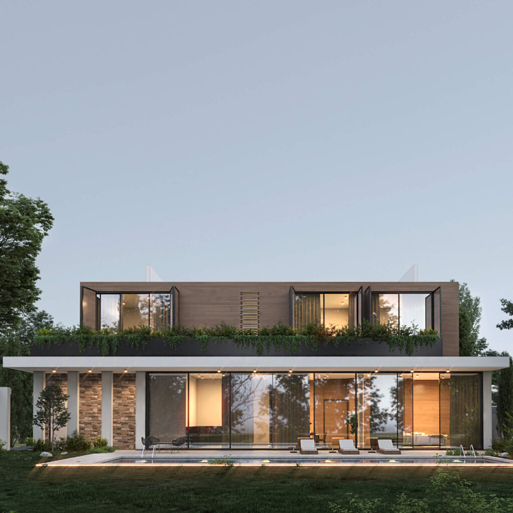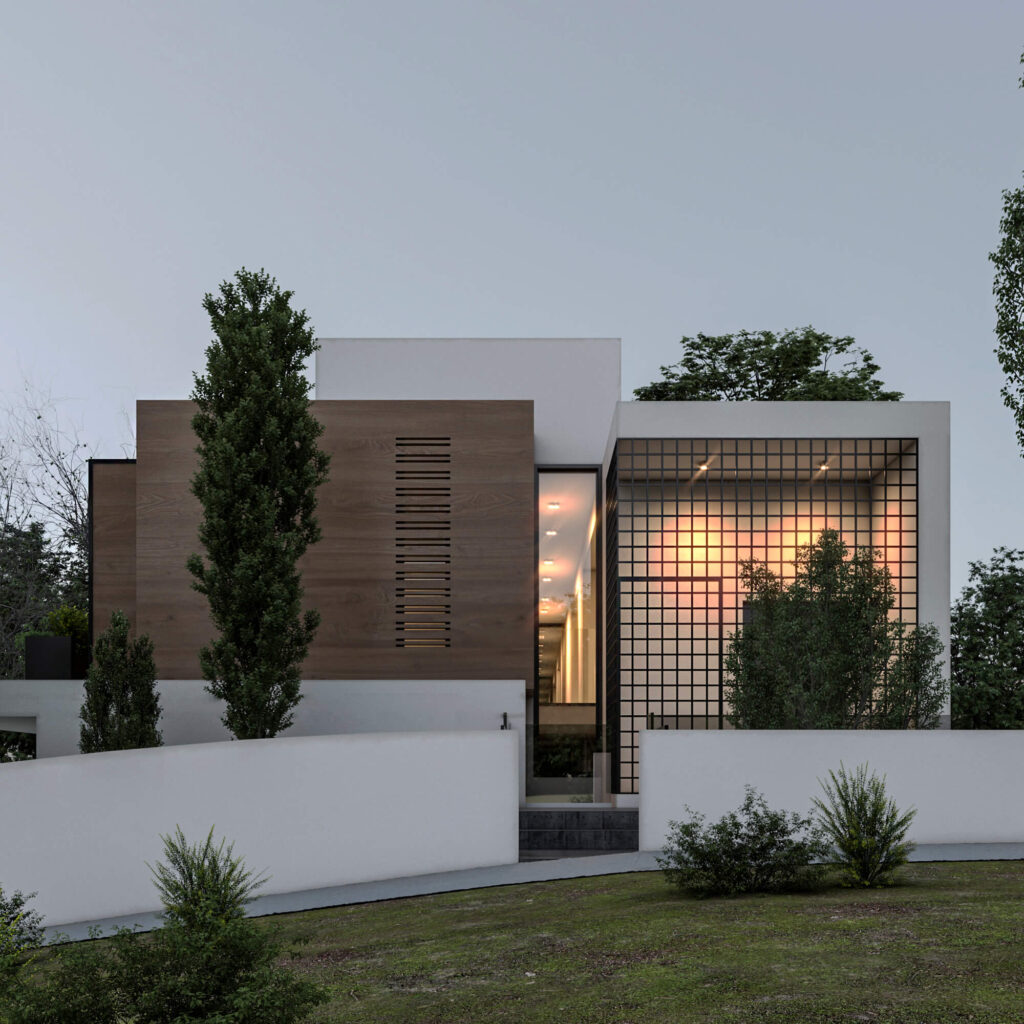 The plot in which the house was designed is submerged by two meters in relation to the public road. The need to design the common areas of the house at the level of the yard was the inspiration for the creation of a reception area at street level and at the average altitude of the two floors. With a limited number of steps to the ground floor and first floor access is very easy achieving the original goal. The ground floor and first floor areas have a south orientation towards the large garden of the house. The sun, natural light and air are managed with technical means which are also elements of the house's decoration.