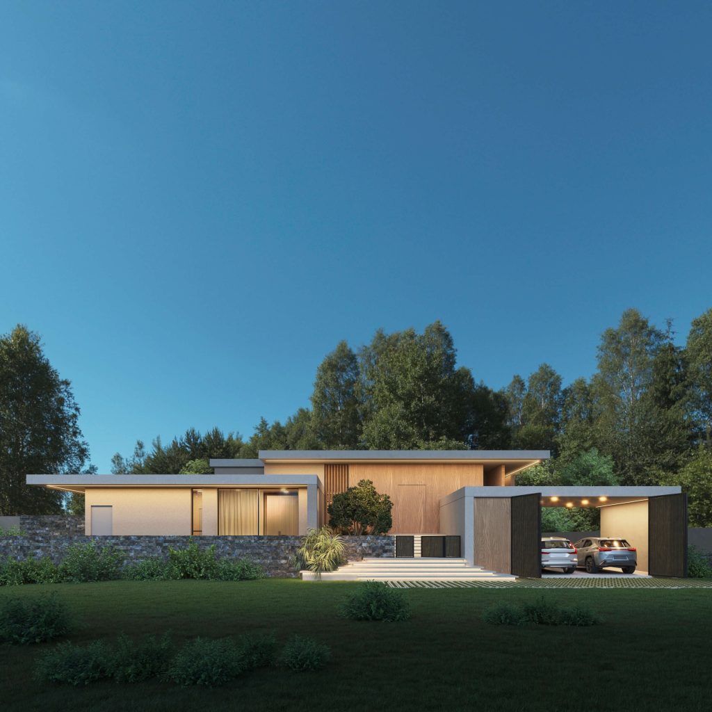 This contemporary residential project, a collection of minimalist structures, is delicately integrated into the natural landscape, creating a seamless blend of indoor and outdoor living. The design philosophy emphasizes tranquility, light, and the flow of space, embracing the beauty of simplicity and the luxury of open, uncluttered living.