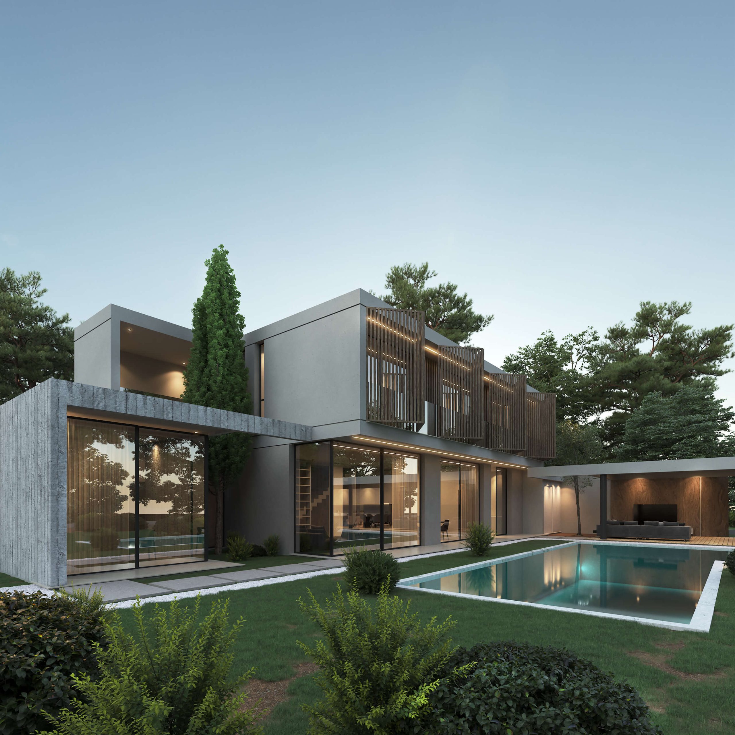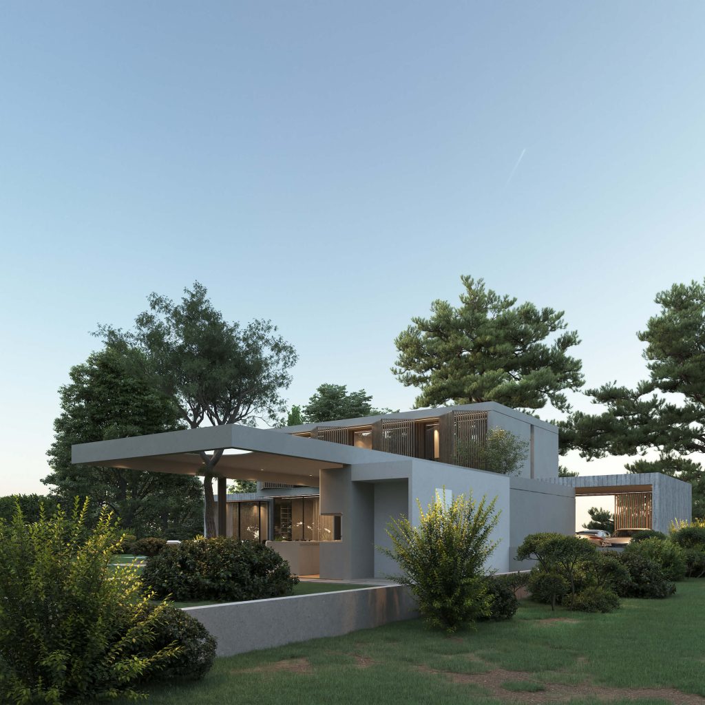 House 9520 is a modern home that stands as a testament to elegance and simplicity. The house is designed with a focus on clean lines and a minimalist approach, creating a striking visual impact. The use of materials such as concrete and wood adds a touch of warmth and texture to the structure, making it inviting and homely despite its sleek exterior.
