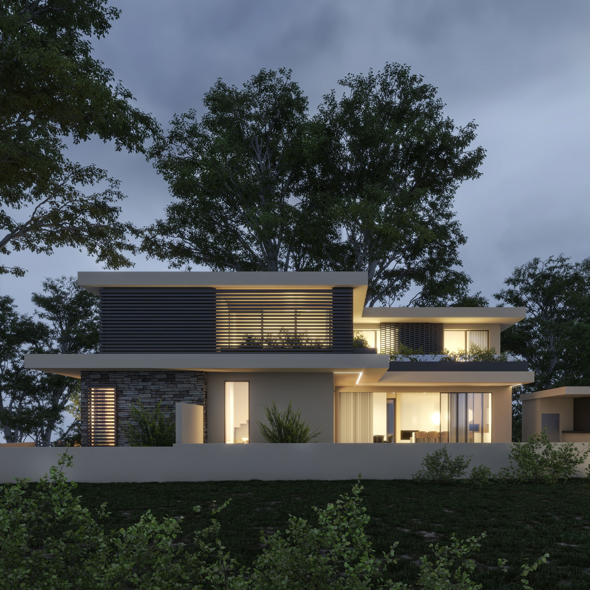 The project was designed as a holiday home in Pegeia. The unobstructed view to the sea and the natural environment was the inspiration for the design. All sides of the house overlooking the sea are lined with large glass opening doors. At the perimeter of the house and in continuation of the interior spaces, terraces have been designed for use depending on the time during the day or season. In this particular house, a careful selection of construction materials has been made, as well as a color choice for the smoothest possible integration into the natural landscape. The same effort was made in the design of the outdoor gardens of the house. The project is an important example of bioclimatic architecture.