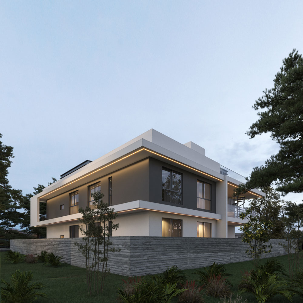Ronit residences just rising two stories above ground along with a basement parking and storage area. The building is a collection of six apartments, each a realm unto itself, yet part of a cohesive whole. The design language speaks in hushed tones of luxury and intimacy, with balconies that retreat into the architecture, offering residents a secluded nook to savor the open air.
